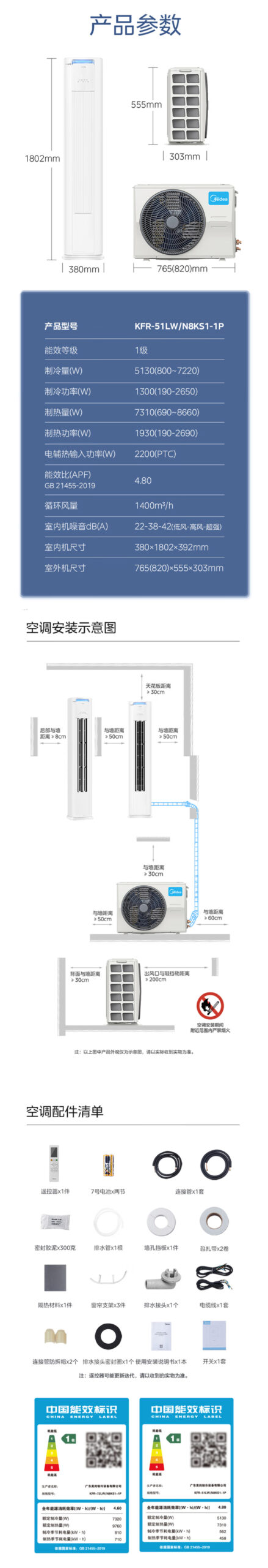 美的空调 大3匹 柜机立式 酷省电KFR-72LW/N8KS1-1P
