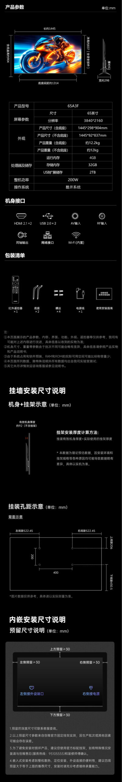 65A3F 65寸