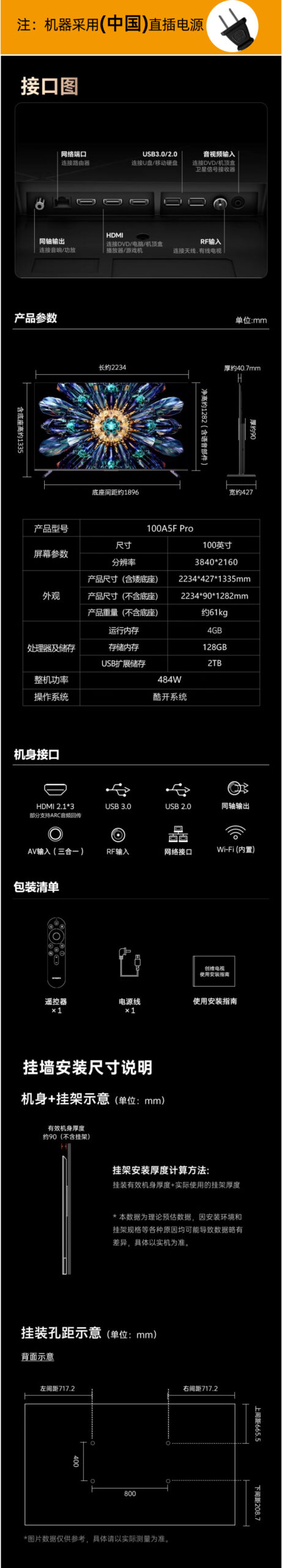 创维A5F Pro 100寸 智能电视机