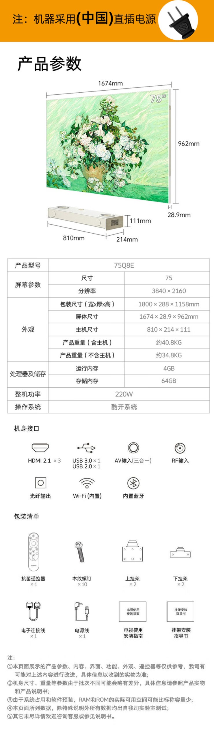 创维电视75Q8E 液晶平板电视 4K高清 AI声控 智能网络电视机 75英寸