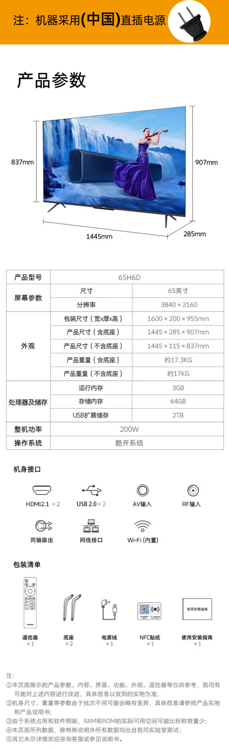 创维 H6D65寸 高清 智能电视机