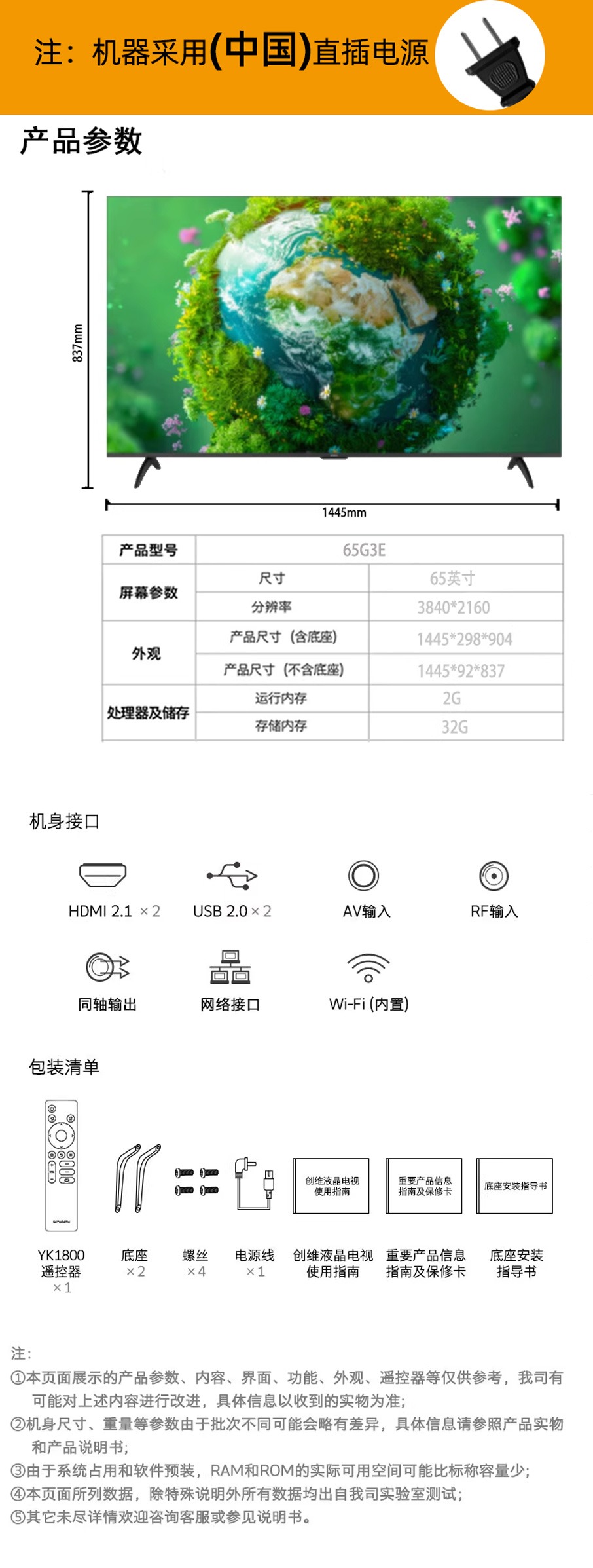 创维 H68D 65寸4K超高清智能液晶电视